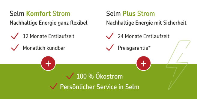 Selm ist unser Zuhause. Deshalb sichern wir ebenfalls eine nachhaltige Energieversorgung für Haushalte und Gewerbe. Erbracht werden unsere Leistungen rund um die Themen Strom und Gas in Kooperation mit dem erfahrenen Energiedienstleister Mark-E. So bündeln wir zielgerichtet genau das, worauf es Ihnen ankommt: Verantwortung für die Region, nachhaltige Produkte, faire Tarife und persönlicher Service.